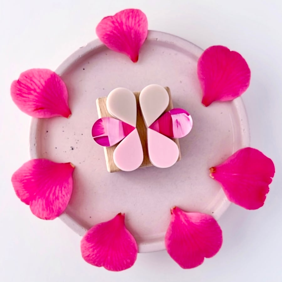 Flamingo (hand-painted) Tear Drop + Frill Stud Pack