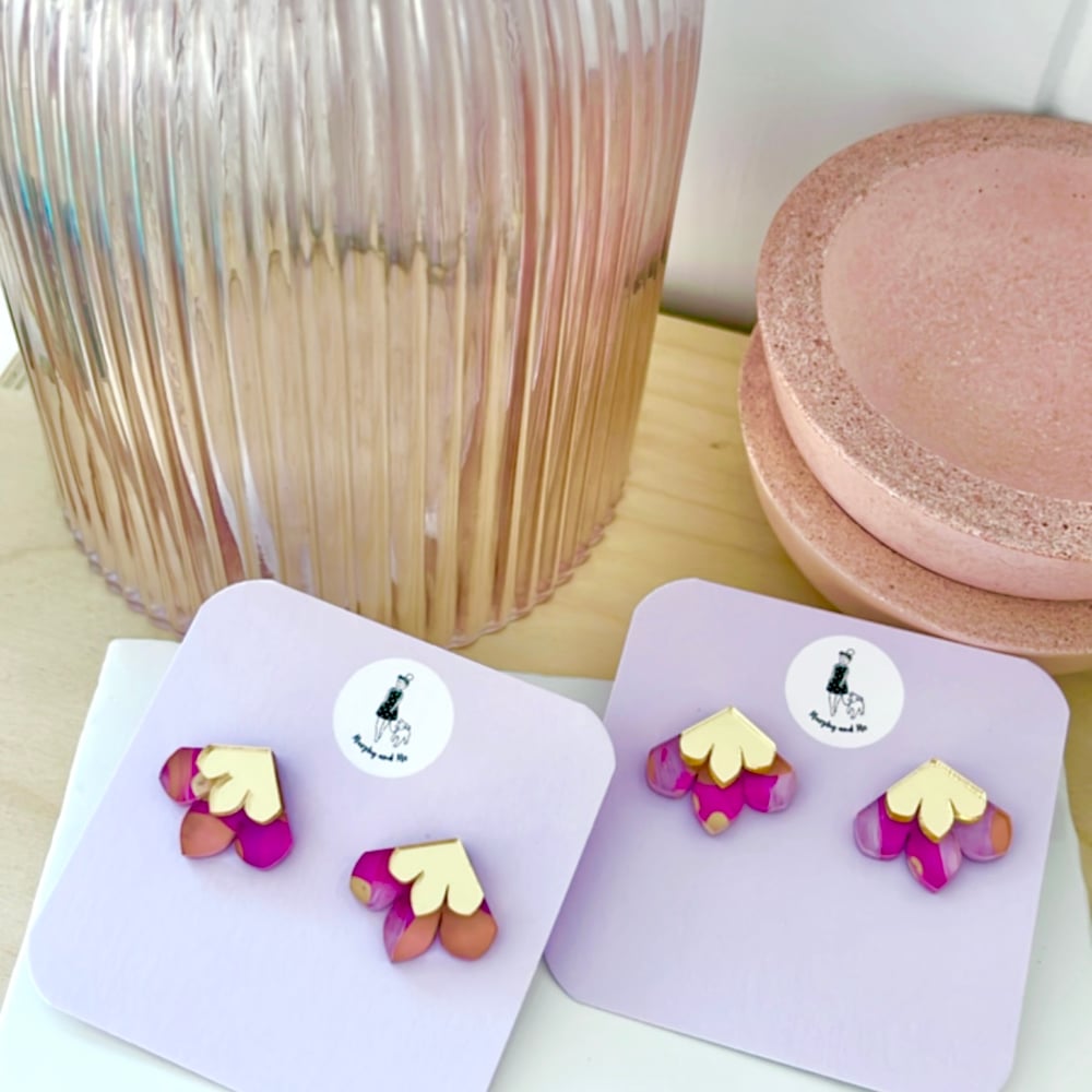 Such sweet little design and hug the ear so well. Made from a hand painted design with a gold mirror piece layered on top. This detail provides extra dimension and catches the light so beautifully.