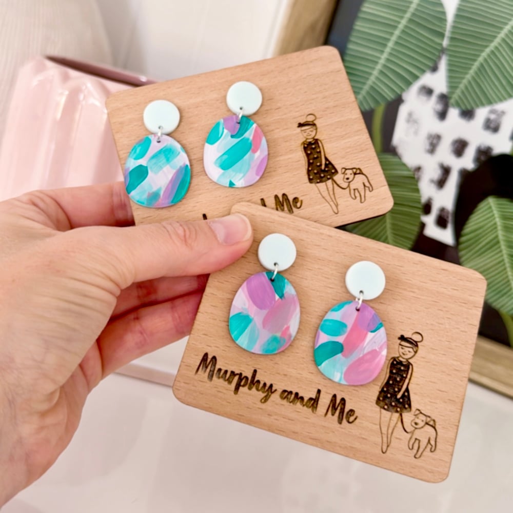These gorgeous dangles are a little labour of love. They have been created by hand painting acrylic and paired with amint stud top to create truly unique pairs. These dangles are like wearable art and will look amazing dressed right up or down (for everyday wear).
